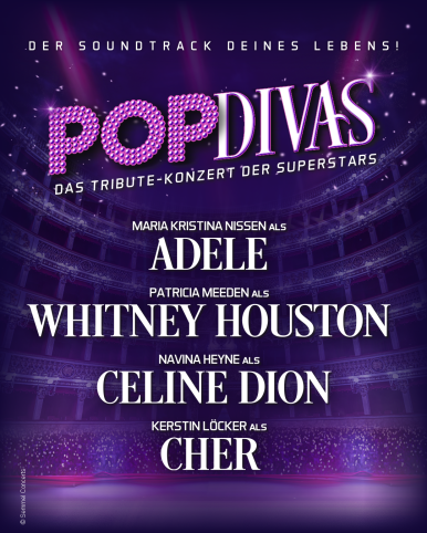 In der neuen Tribute-Show POP DIVAS erleben die Zuschauer eine mitreißende Hommage an vier der größten Stimmen der Popgeschichte: Whitney Houston, Cher, Céline Dion und Adele. Mit beeindruckenden Sängerinnen, einer herausragenden Live-Band und einer Inszenierung, die jeder dieser Ikonen gerecht wird, werden ihre größten Hits gefeiert.